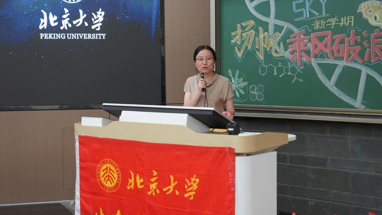研究生新生代表樊宜萱分享了她对生命科学的热爱与向往。她表示,正是对生命奥秘的好奇让大家相聚,并呼吁同学们培养坚韧的品格,始终保持对生活的热爱,努力成为更完整、更丰盈的人。最后,她立足于北大生物学科百年历史,号召大家在探索科学之路中并肩前行,共同书写北大生科新的百年华章。