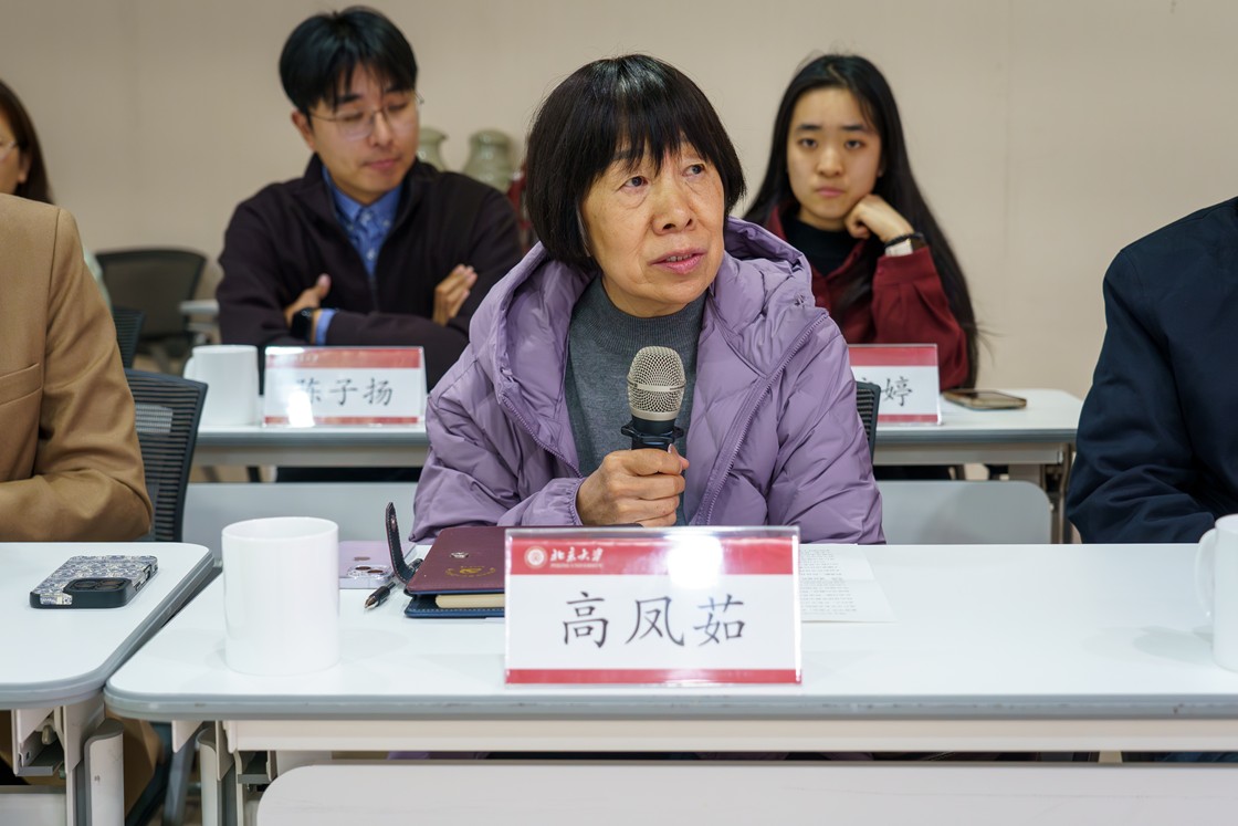 高凤茹、于龙川作为学院离退休教师代表分别进行了发言。高凤茹从一个动人的故事出发,讲述了学院一位离退休老教师突发疾病,其家属向学院求助,学院迅速响应,为老教师提供及时有效帮助的故事,体现了学院将对老教师的关心真正落到了实处。于龙川则结合他退休后深耕教学一线的经历,讲述了他仍坚持活跃在北大校内外的讲台,积极指导研究生,将毕生所学倾囊相授的故事。他以实际行动诠释了何为“主动作为”,展现了学院老教师退而不休、始终心系下一代成长的高尚情怀。