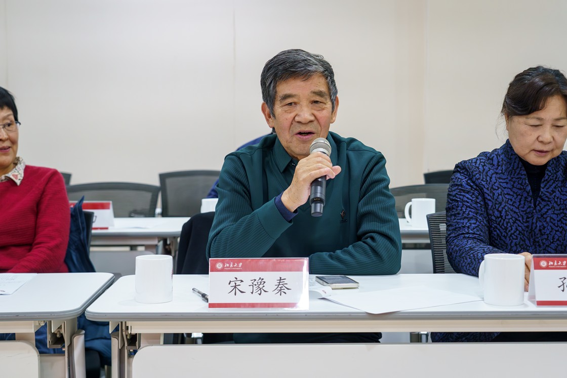 自由交流环节,校关工委及兄弟院系的领导、老师分别进行了发言。孙丽首先肯定了学院在关心下一代工作中的成果,表示学院离退休老教师和青年之间的“双向”互动非常令人感动,同时,她希望学院在未来的工作中,聚焦骨干队伍的建设和制度建设,将学院的特色创新做法进一步总结归纳,使之成为特色鲜明的亮点工作。关海庭对学院关工委的工作,尤其是对老教师与青年之间的“双向”赋能的特色做法表示了肯定,希望学院能够继续将其传承、发扬。于超美、白雪秋、刘寿安、安国江、杨展澜、耿琴也依次进行了发言,表示学院关工委的工作是紧密围绕着工作理念开展的,如尊师基金、老教授专访、精准帮扶等举措都切实将对离退休老教师的全面关怀落到了实处,并希望未来这些举措能够一直传承下去。兄弟院系及bat365中文官网登录入口的相关领导、老师也进行了交流分享。