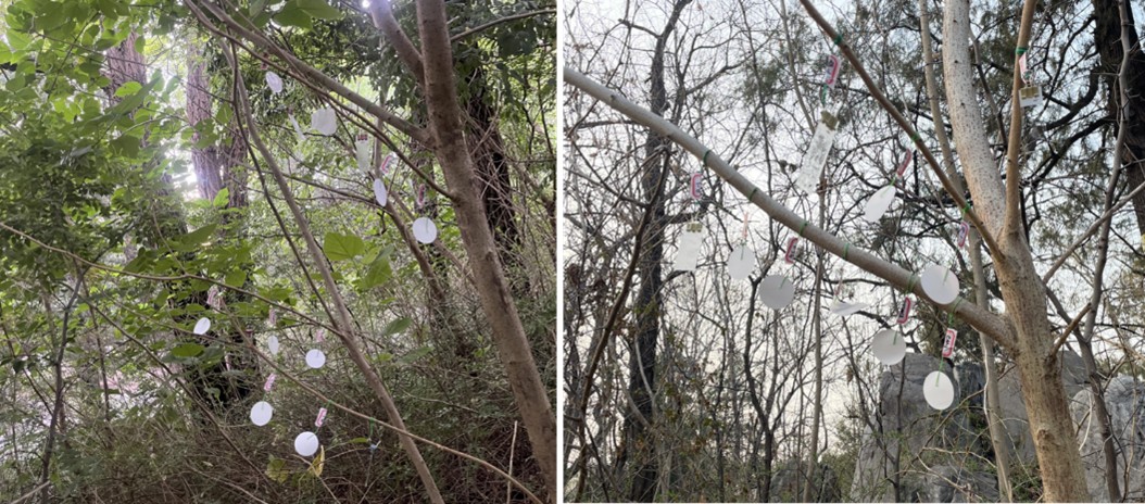 图1 空气eDNA被动采样器材料比较实验 秋季(左)与春季(右)采样照片