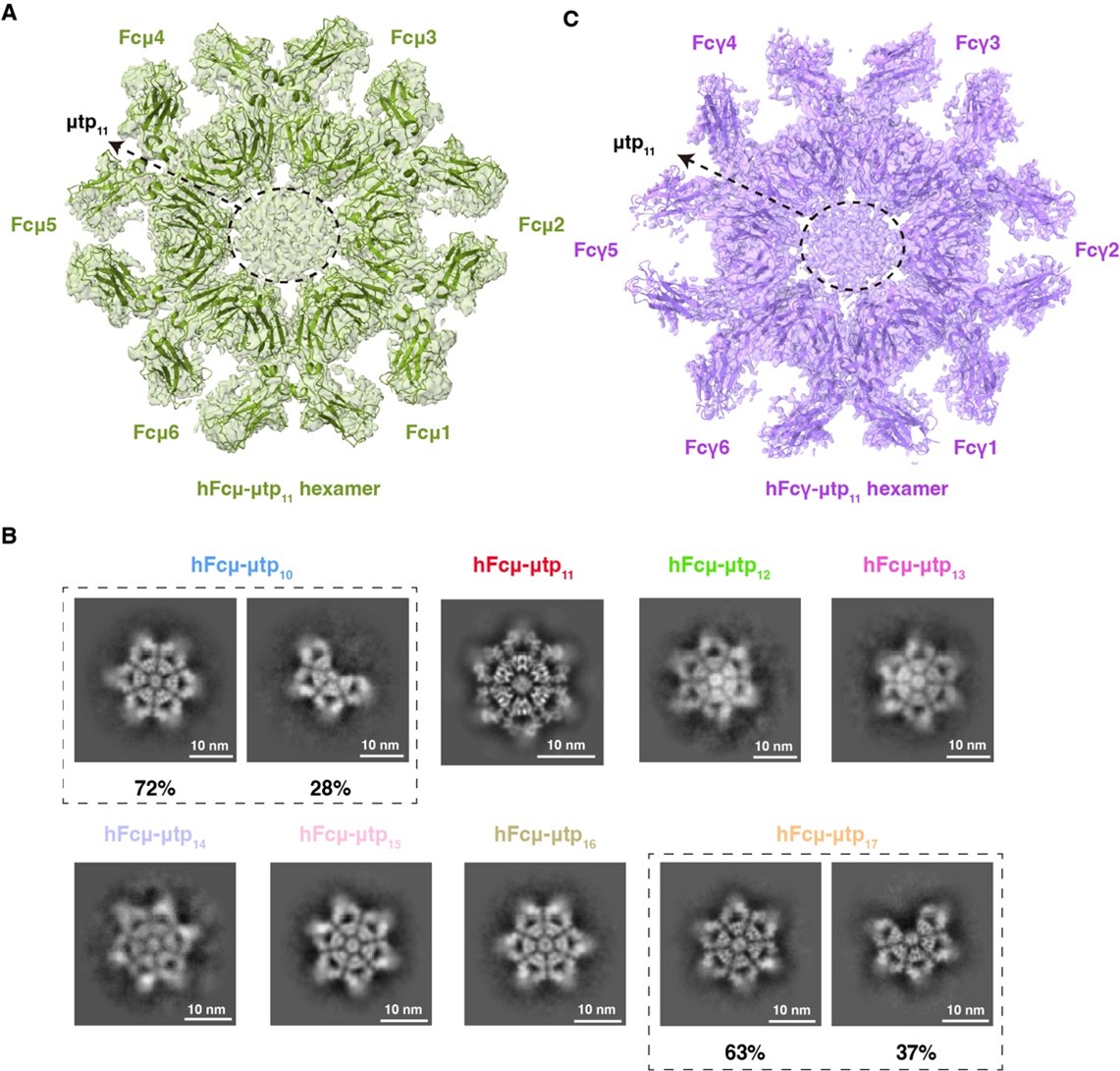 图1. IgX-Fc六聚体的冷冻电镜结构