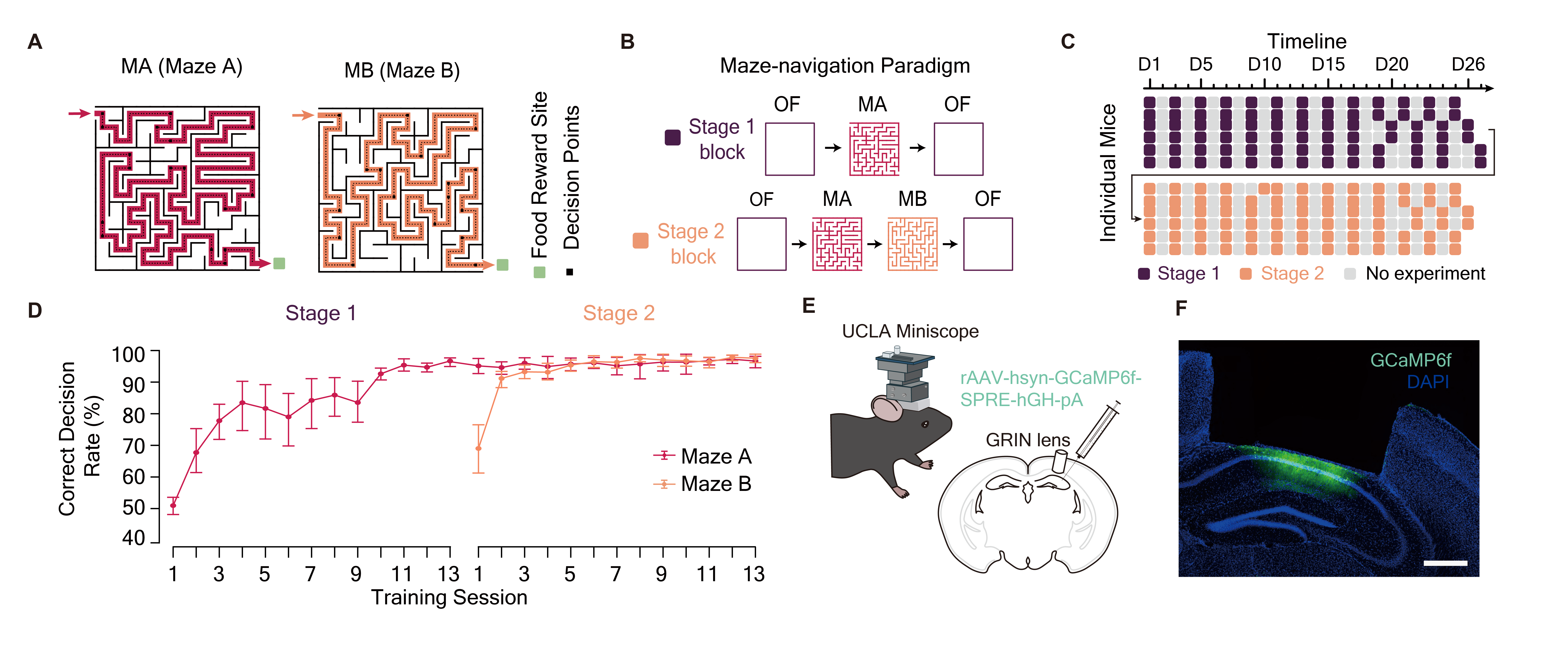 图 1. 迷宫导航范式和动物行为