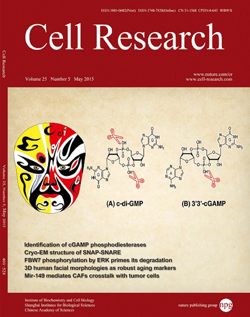 上述成果于2015年4月3日以Article形式在线发表于Cell Research,并被选为该杂志当期的封面文章(如图);同期还配发由美国Memorial Sloan-Kettering癌症中心Dinshaw J Patel教授撰写的题为“V-cGAPs: attenuators of 3′3′-cGAMP signaling”的评论文章。该重大突破一经发表即引起领域内高度关注,瑞典卡罗林斯卡学院Römling教授邀请蒋争凡老师为Current Opinion in Microbiology撰写综述文章,对该热点领域进行回顾、总结并介绍最新研究进展。原文链接为 http://www.cell-research.com/aoparts.asp?id=343