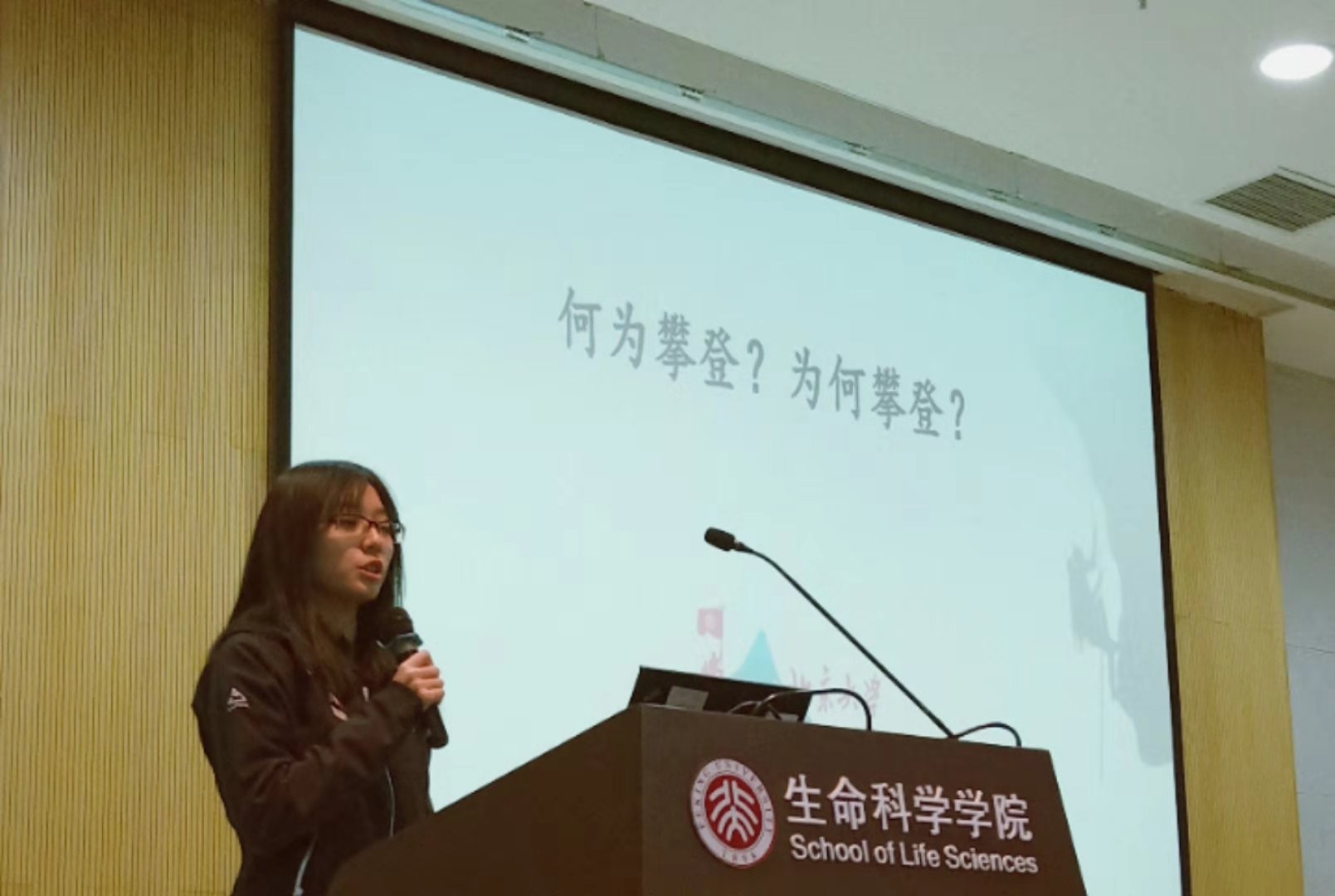 接下来,山鹰登山队的魏伟学姐向同学们介绍了山鹰登山队由准备、训练、前期适应直至最后登顶的攀登珠峰的全过程。魏伟学姐从整个过程中挑选了几个自己感触最深刻的节点进行分享,让同学们从实例中对登顶珠峰的整个过程有了更为详细直观的了解,通过魏伟的分享真切地感受到了那种奋发向上、艰苦奋斗、不畏艰险的山鹰精神。值得一提的是,魏伟学姐同时讲述了一些攀登珠峰时登山队发生的趣事以及自己被求婚的过程,使会场的气氛十分轻松活泼。