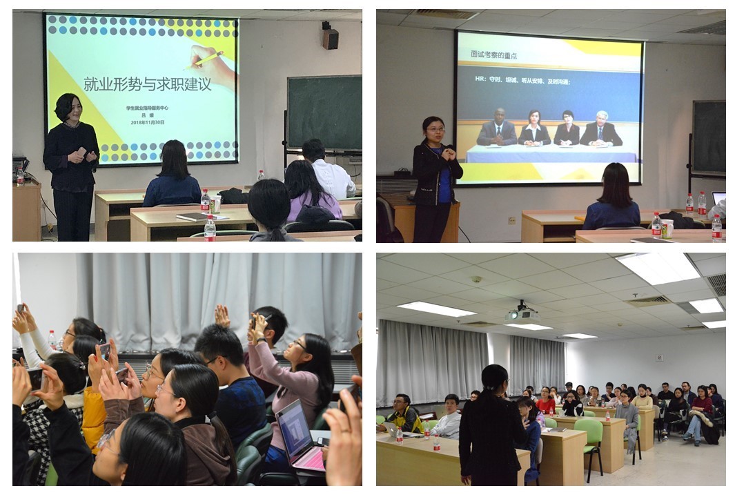 为让同学们更好地了解近年就业形势、尽早做好规划和准备,11月30日下午,bat365中文官网登录入口职业生涯发展中心主办的就业形势与就业政策讲座在金光生命科学大楼311会议室成功举办。本次活动有幸邀请到北京大学学生就业指导服务中心副主任吕媛老师主讲,她为同学们详细地介绍了当前就业形势,解读了相关政策,并就同学们关心的就业流程、三方协议签订等问题进行了深入的讲解。学院学工办张桐语出席活动,二十余位本科生与研究生同学参加讲座。本次活动由印蕾同学主持。