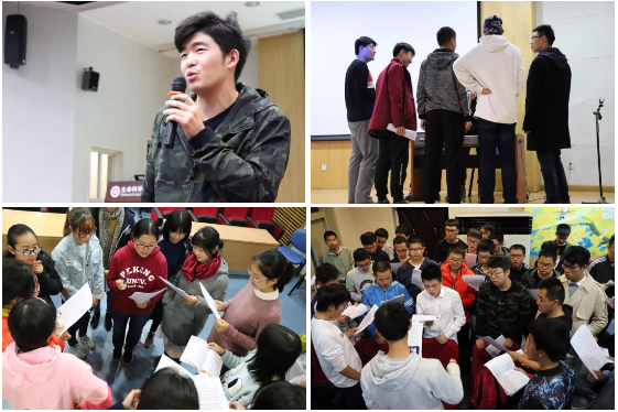万知航首先介绍了一二·九合唱比赛的历史背景,他表示一二·九合唱比赛作为北大一项传统活动,已经成为每一届北大学子初入燕园时的必修课,更是同学们大学生活中不可多得的集体回忆。接着,2017级本科生兼新生班级辅导员李雨学长分享了他参加一二·九合唱比赛的感悟,他表示,虽然训练有时会比较辛苦,但是同学们一起练习、互相帮助,共同完成训练和演出的经历却是宝贵的回忆和体验。