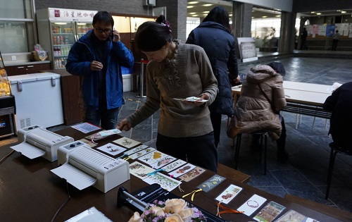 参加活动的老师们先将已干制的植物组织放在纸质底板上,随后进行塑封。纸板的形状不尽相同,塑封好的压花作品有的如同照片,有的则被做成了书签。