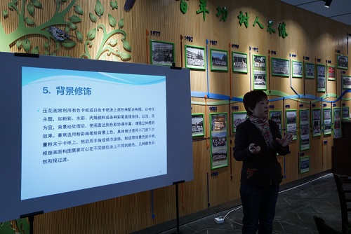 胡老师首先给老师们简单介绍了压花艺术,让大家对这门技艺有基本的认识,然后便指导大家进入实际操作环节。
