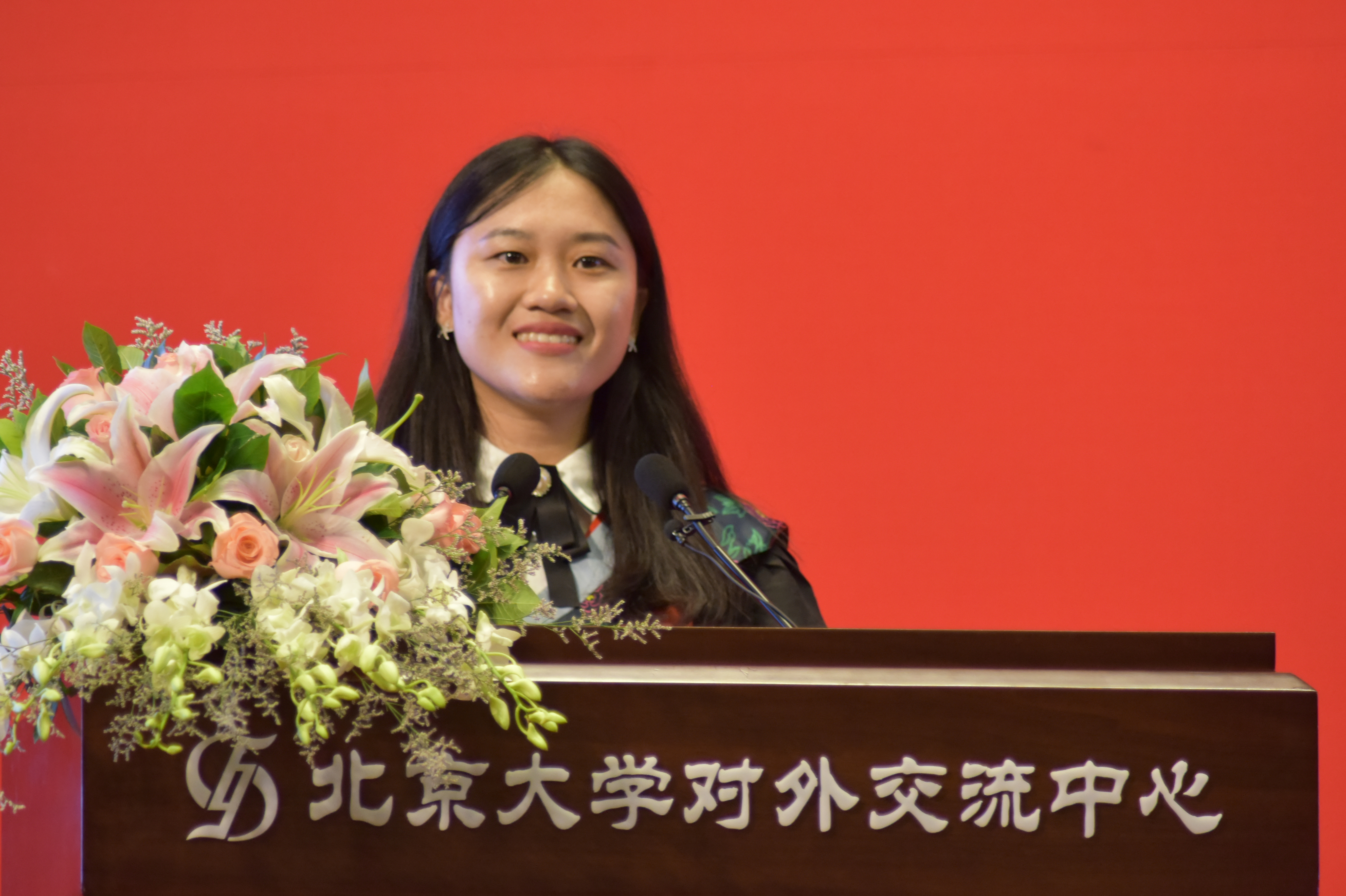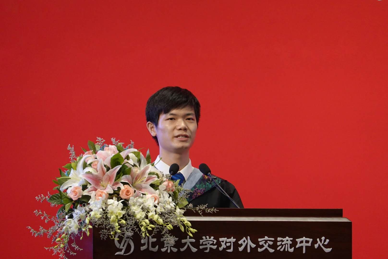 2019届研究生毕业生鞠艳敏作为博士生发言代表表达了对父母、学院和老师培养的感激之情,回顾博士生涯,无数个日夜的拼搏奋斗造就了现在的成长,这些都将成为人生宝贵的财富。她希望同学们走出校园步入社会之后,无论潜心学术还是投身职场,都要做到知行合一,练就一身真本领,北大生科人是同学们身上永恒的标签和印记。