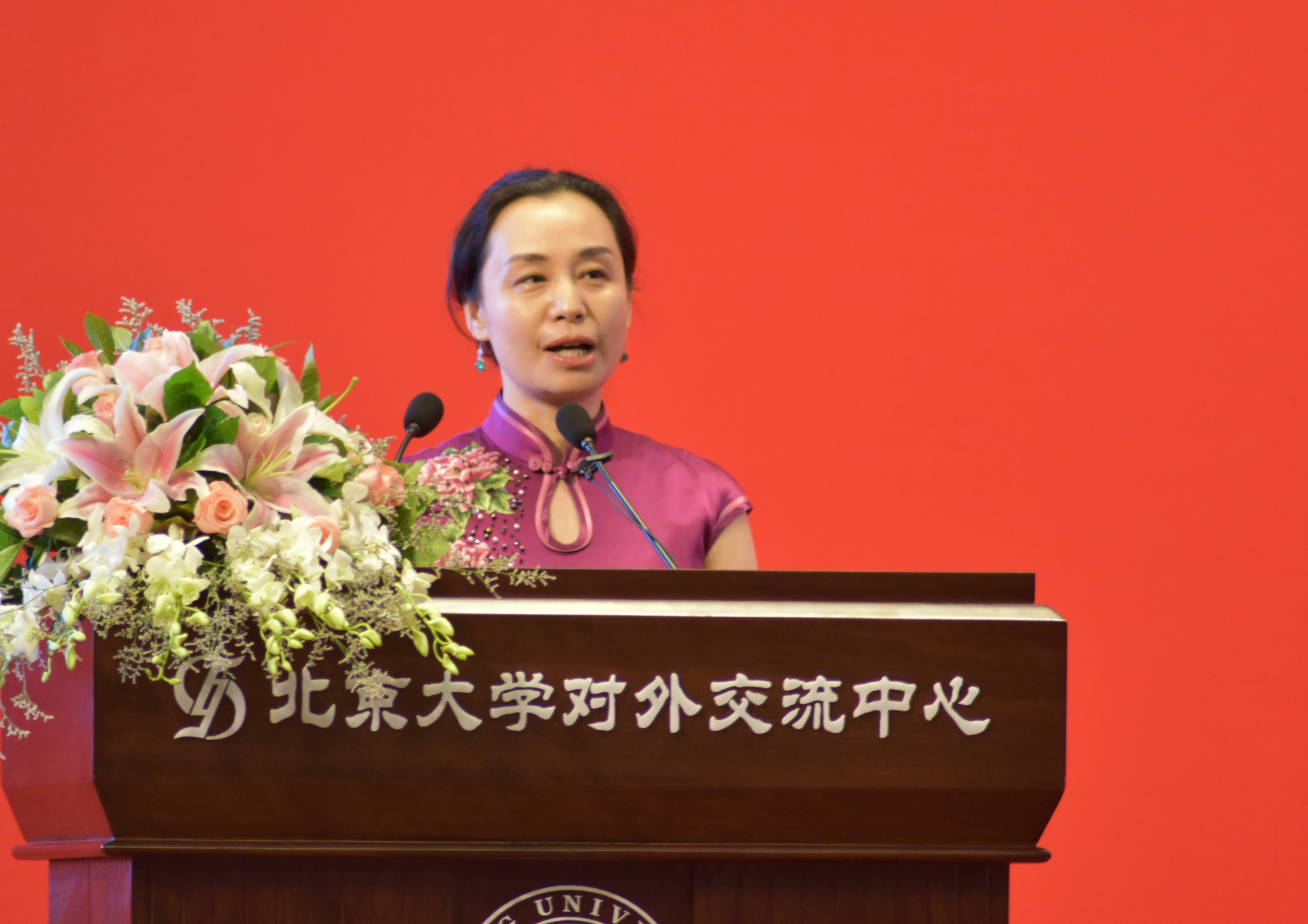 之后,北京北大未名生物工程集团有限公司人力资源总监徐为群女士介绍了“优秀毕业生沈同奖”的设立背景及初衷,指出该奖学金背后所折射出的感恩知恩的内涵与意义,希望所有毕业生都有一颗感恩之心,并为大家送上美好的毕业祝愿。