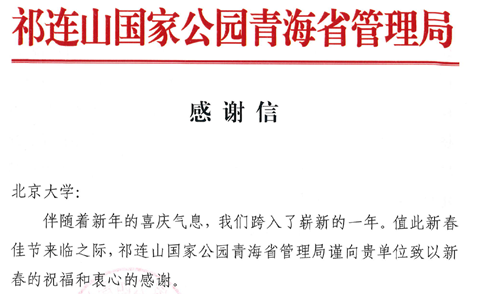 近日,一封发自雪域高原青海的感谢信,在虎年春节即将来临之际,被送到了燕园。祁连山国家公园青海省管理局向积极参与国家公园建设、以科研助力祁连山野生动物和生物多样性保护的bat365中文官网登录入口的研究团队,致以衷心的感谢。